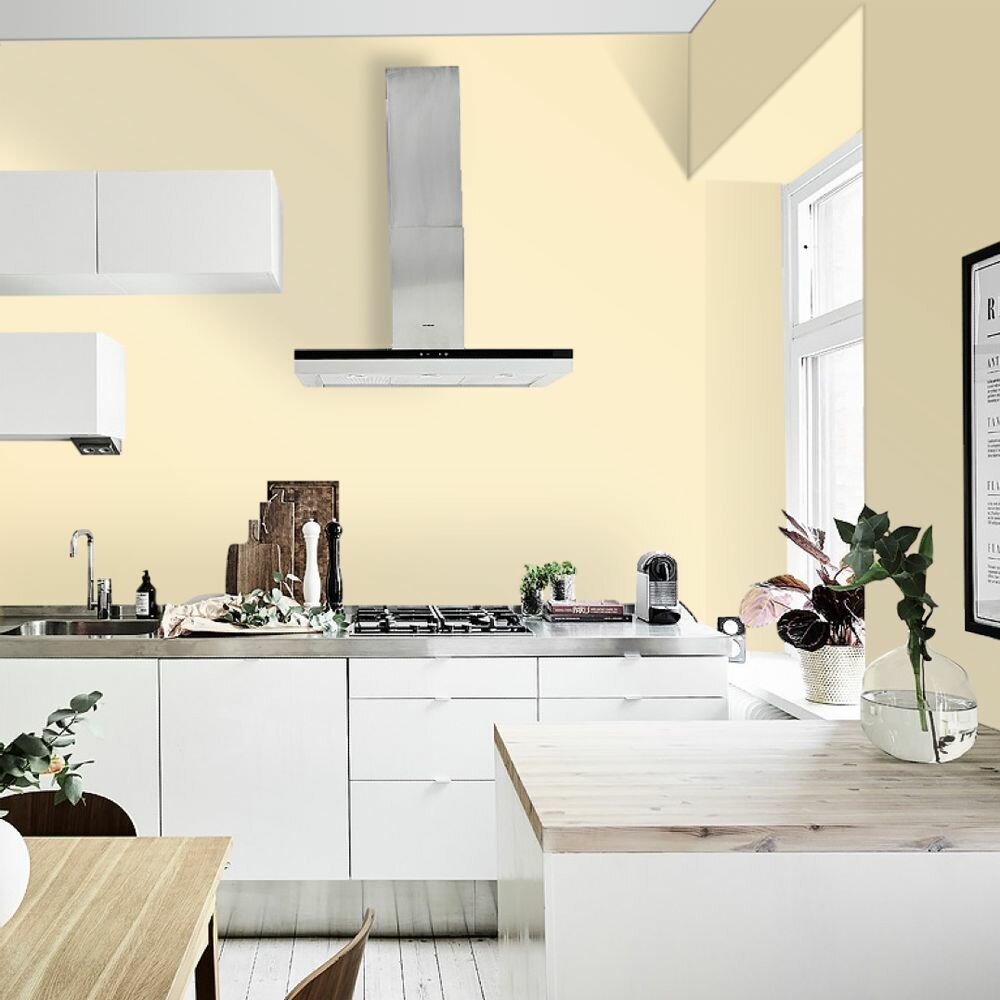 Краска моющаяся интерьерная для стен и потолков, Pollux INTERIOR без запаха, быстросохнущая, акриловая, матовое покрытие, цвет NCS S 0520-Y10R, 1л.