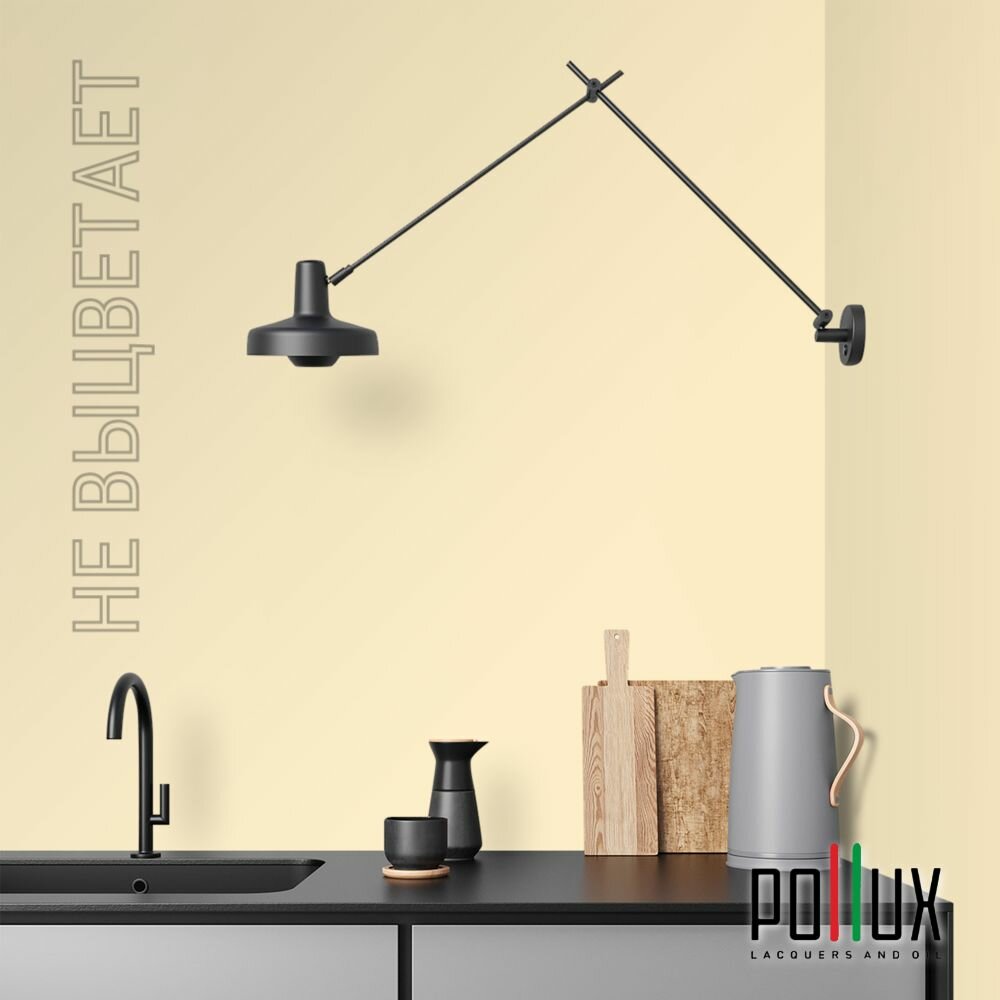 Краска моющаяся интерьерная для стен и потолков, Pollux INTERIOR без запаха, быстросохнущая, акриловая, матовое покрытие, цвет NCS S 0505-Y10R, 1л.
