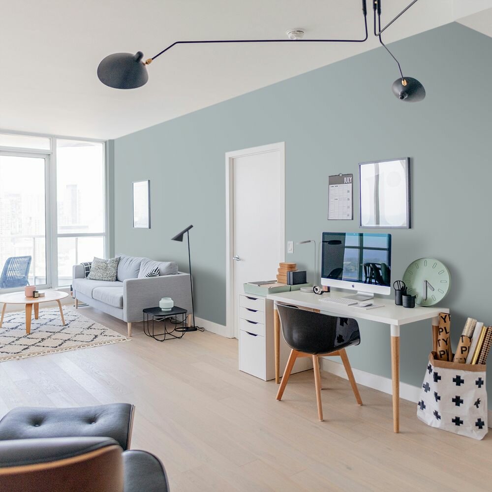 Краска моющаяся интерьерная для стен и потолков, Pollux INTERIOR без запаха, быстросохнущая, акриловая, матовое покрытие, цвет NCS S 4550-B20G, 1л.