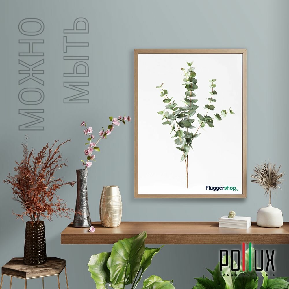 Краска моющаяся интерьерная для стен и потолков, Pollux INTERIOR без запаха, быстросохнущая, акриловая, матовое покрытие, цвет NCS S 3060-B20G, 1л.