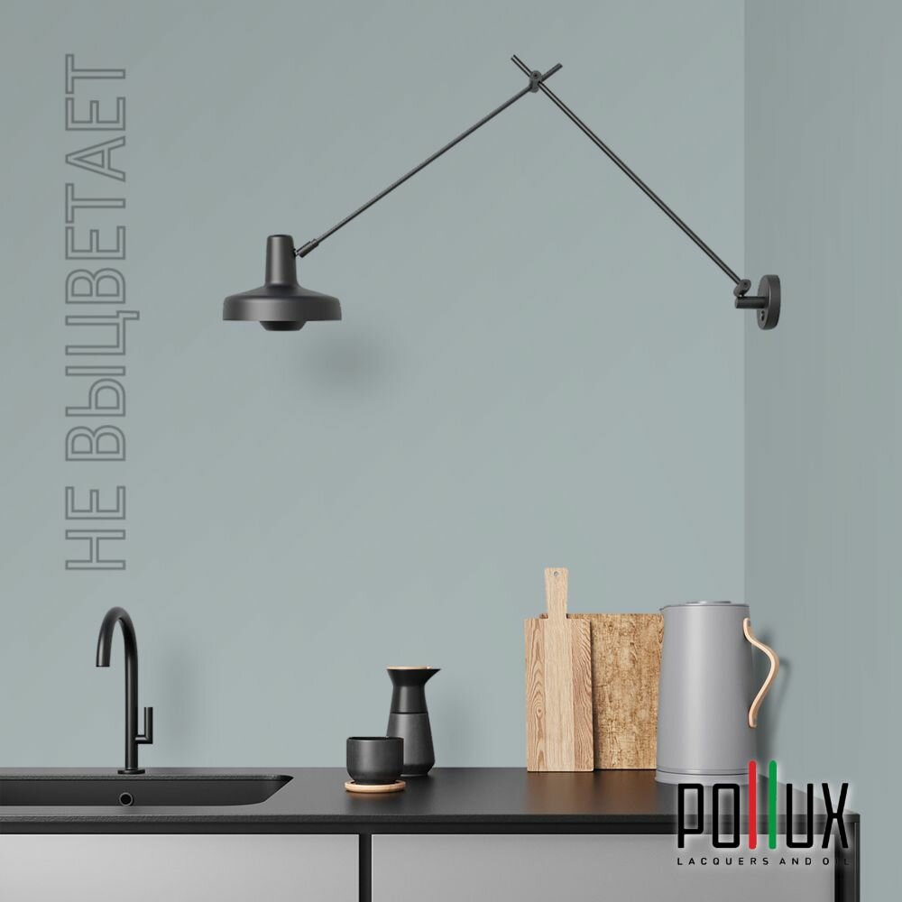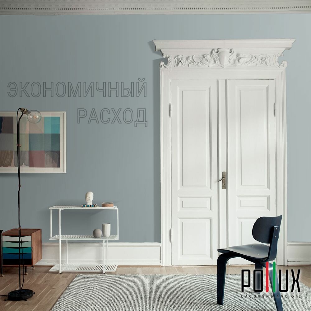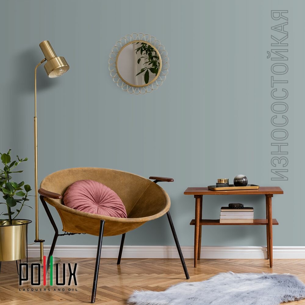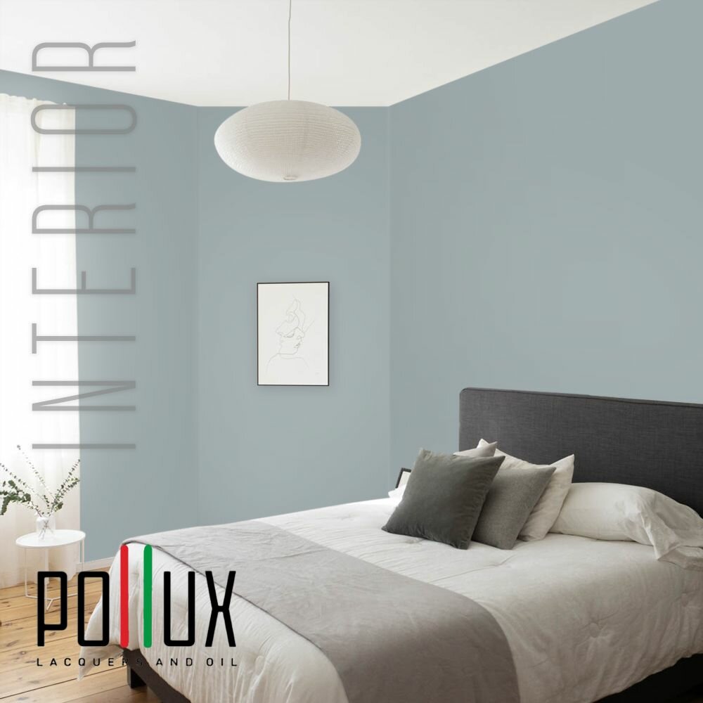 Краска моющаяся интерьерная для стен и потолков, Pollux INTERIOR без запаха, быстросохнущая, акриловая, матовое покрытие, цвет NCS S 1040-B20G, 1л.