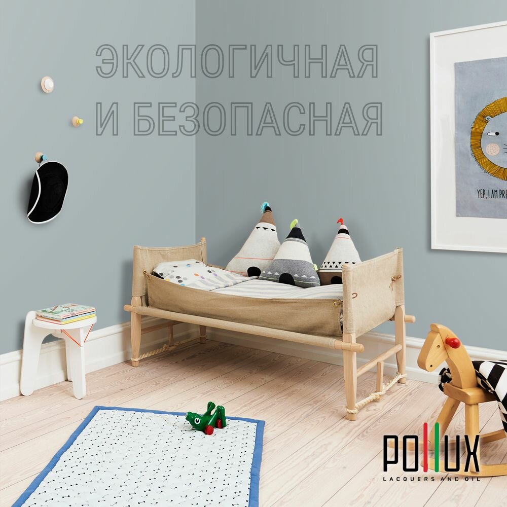 Краска моющаяся интерьерная для стен и потолков, Pollux INTERIOR без запаха, быстросохнущая, акриловая, матовое покрытие, цвет NCS S 1015-B20G, 1л.