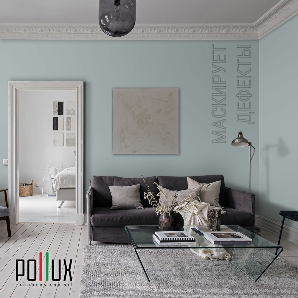 Краска моющаяся интерьерная для стен и потолков, Pollux INTERIOR без запаха, быстросохнущая, акриловая, матовое покрытие, цвет NCS S 0505-B20G, 1л.