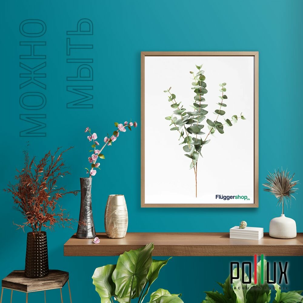 Краска моющаяся интерьерная для стен и потолков, Pollux INTERIOR без запаха, быстросохнущая, акриловая, матовое покрытие, цвет NCS S 4050-B20G, 1л.