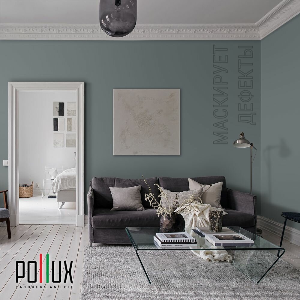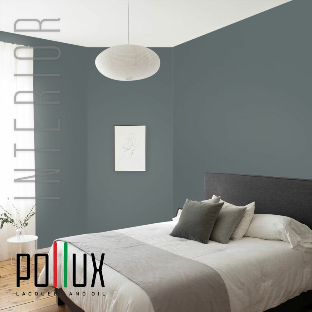 Краска моющаяся интерьерная для стен и потолков, Pollux INTERIOR без запаха, быстросохнущая, акриловая, матовое покрытие, цвет NCS S 8505-B20G, 1л.