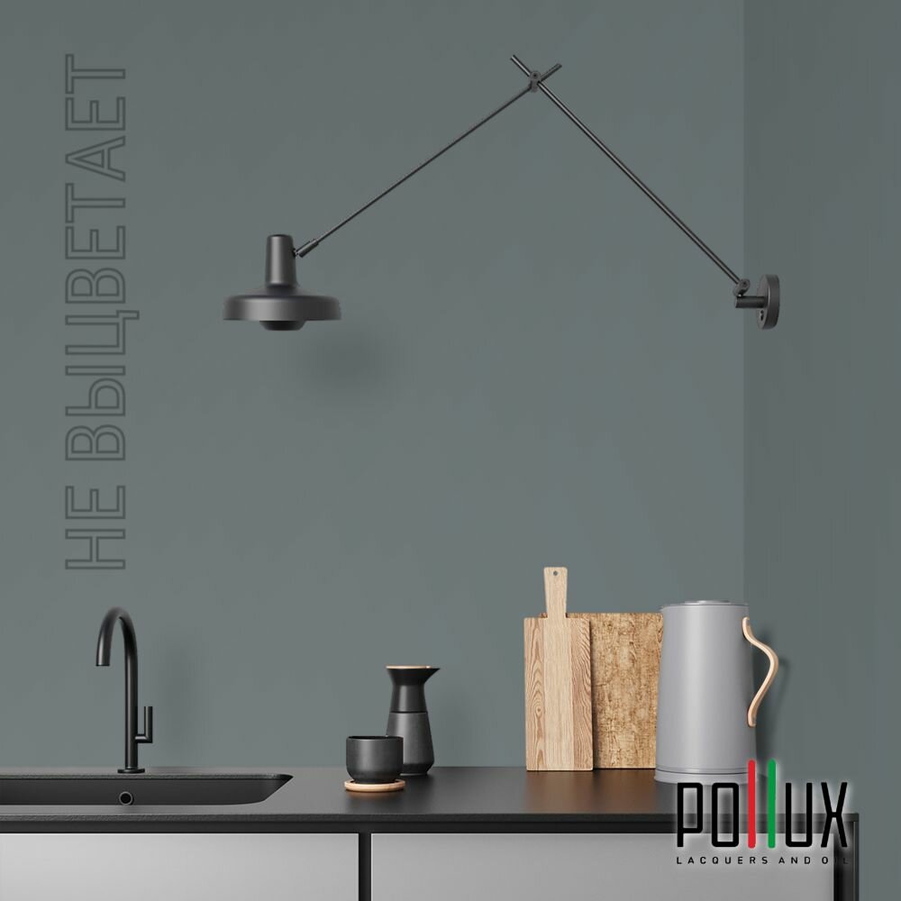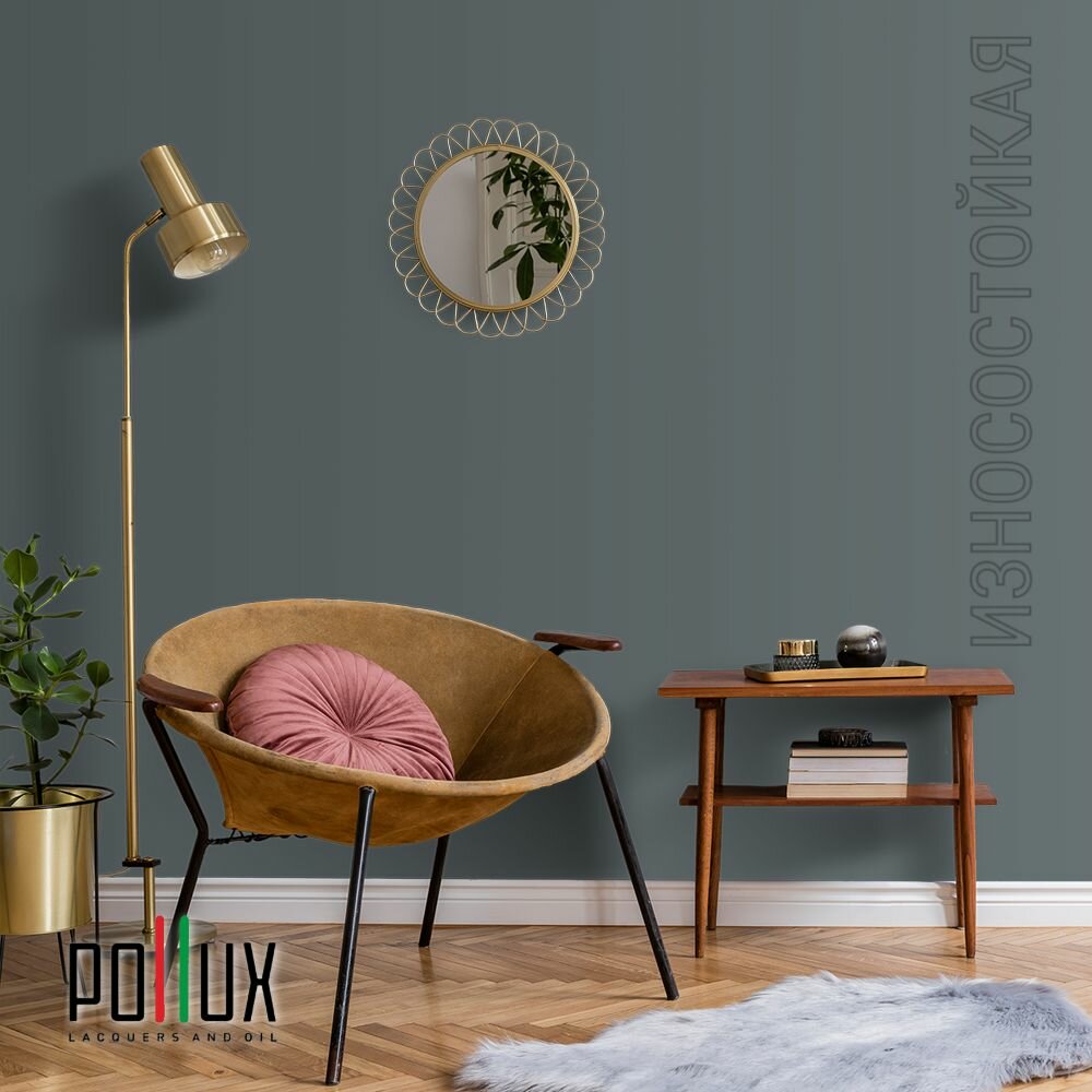 Краска моющаяся интерьерная для стен и потолков, Pollux INTERIOR без запаха, быстросохнущая, акриловая, матовое покрытие, цвет NCS S 8005-B20G, 1л.