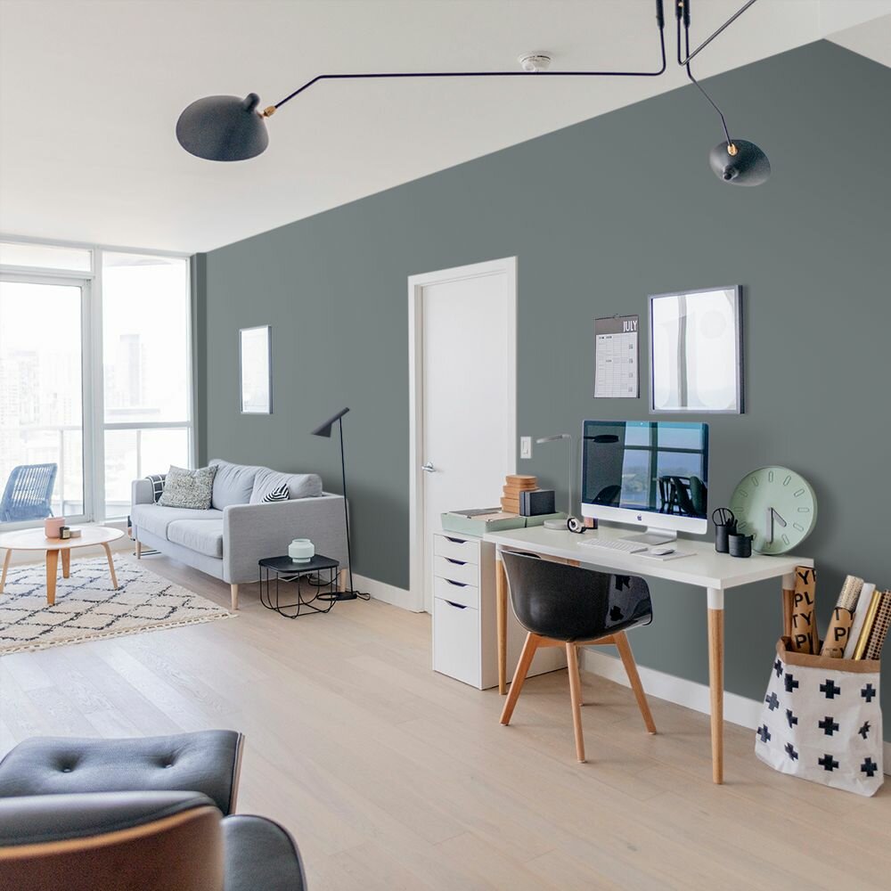 Краска моющаяся интерьерная для стен и потолков, Pollux INTERIOR без запаха, быстросохнущая, акриловая, матовое покрытие, цвет NCS S 4050-B20G, 1л.