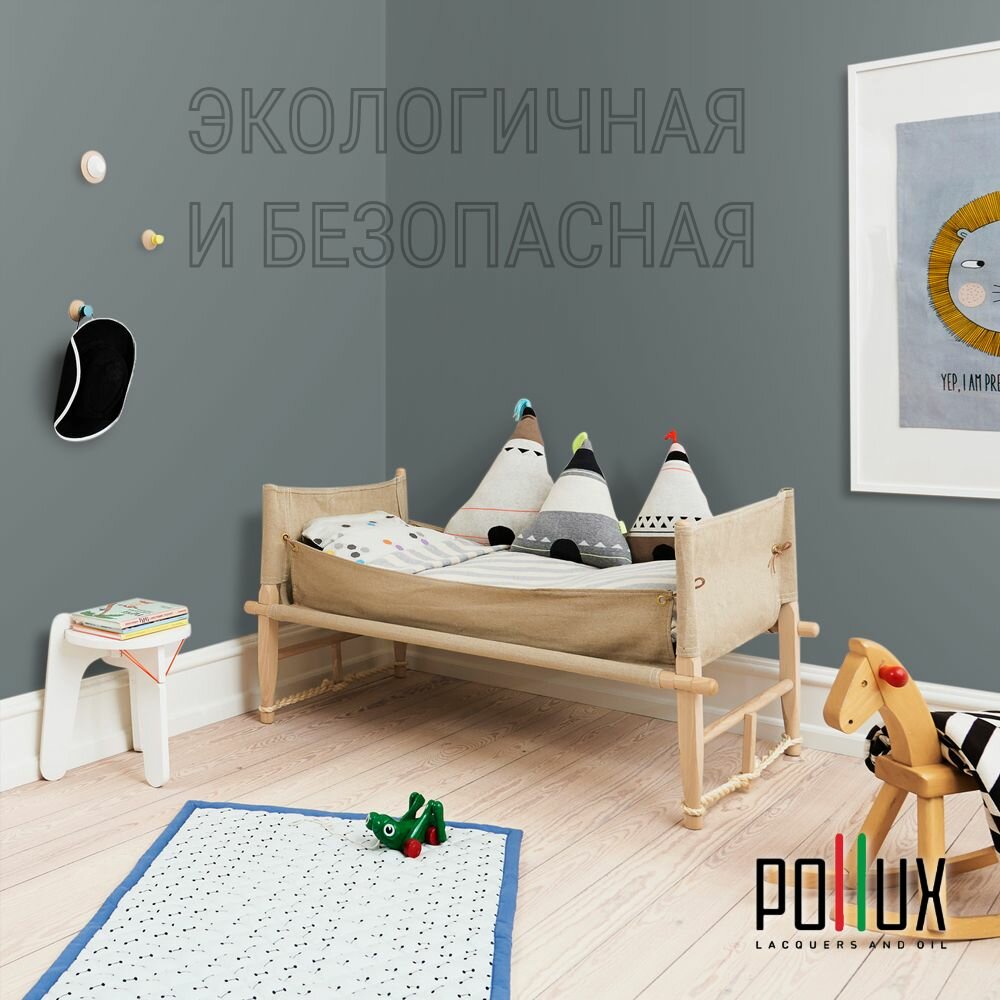 Краска моющаяся интерьерная для стен и потолков, Pollux INTERIOR без запаха, быстросохнущая, акриловая, матовое покрытие, цвет NCS S 1015-B20G, 1л.