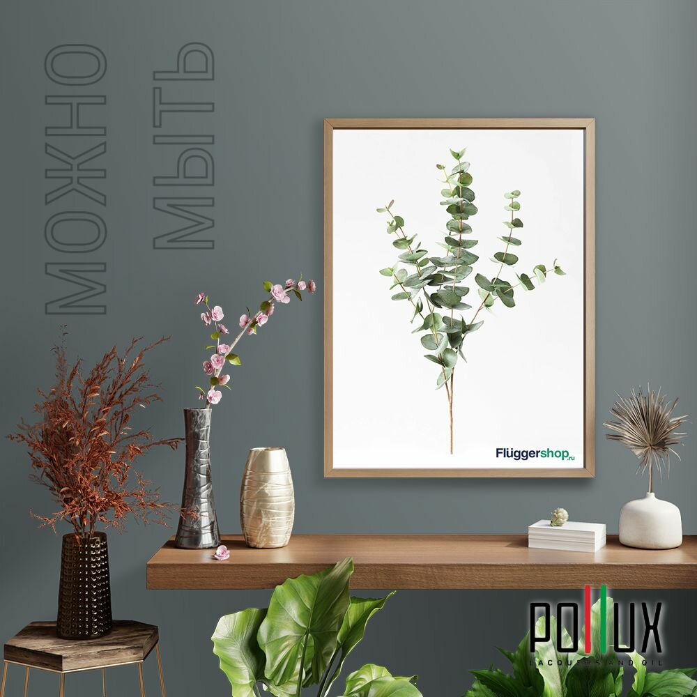 Краска моющаяся интерьерная для стен и потолков, Pollux INTERIOR без запаха, быстросохнущая, акриловая, матовое покрытие, цвет NCS S 3060-B20G, 1л.
