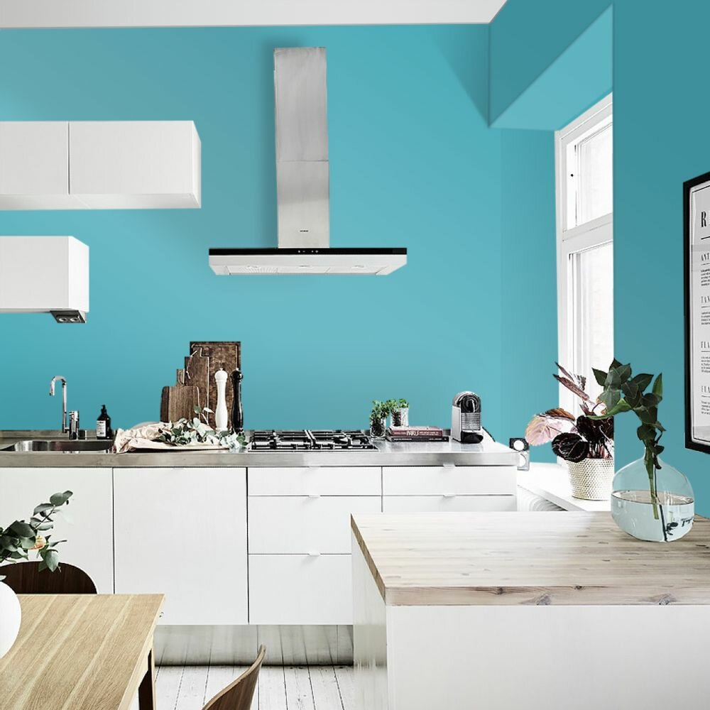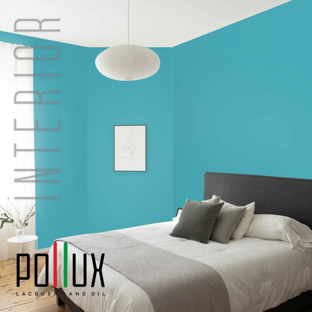 Краска моющаяся интерьерная для стен и потолков, Pollux INTERIOR без запаха, быстросохнущая, акриловая, матовое покрытие, цвет NCS S 2050-B20G, 1л.
