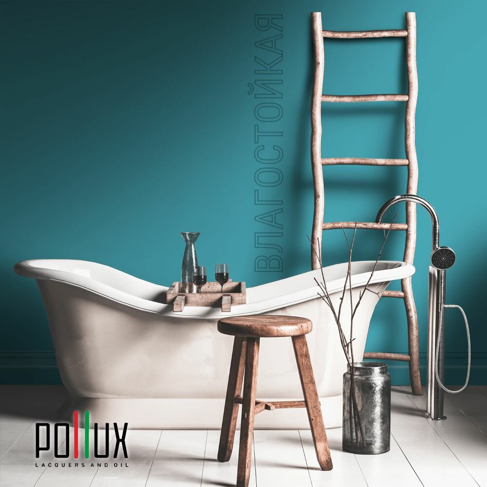 Краска моющаяся интерьерная для стен и потолков, Pollux INTERIOR без запаха, быстросохнущая, акриловая, матовое покрытие, цвет NCS S 2555-B20G, 1л.