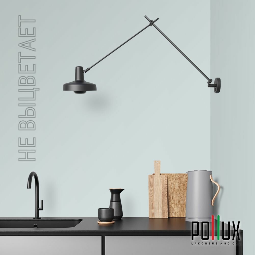 Краска моющаяся интерьерная для стен и потолков, Pollux INTERIOR без запаха, быстросохнущая, акриловая, матовое покрытие, цвет NCS S 0507-B20G, 1л.