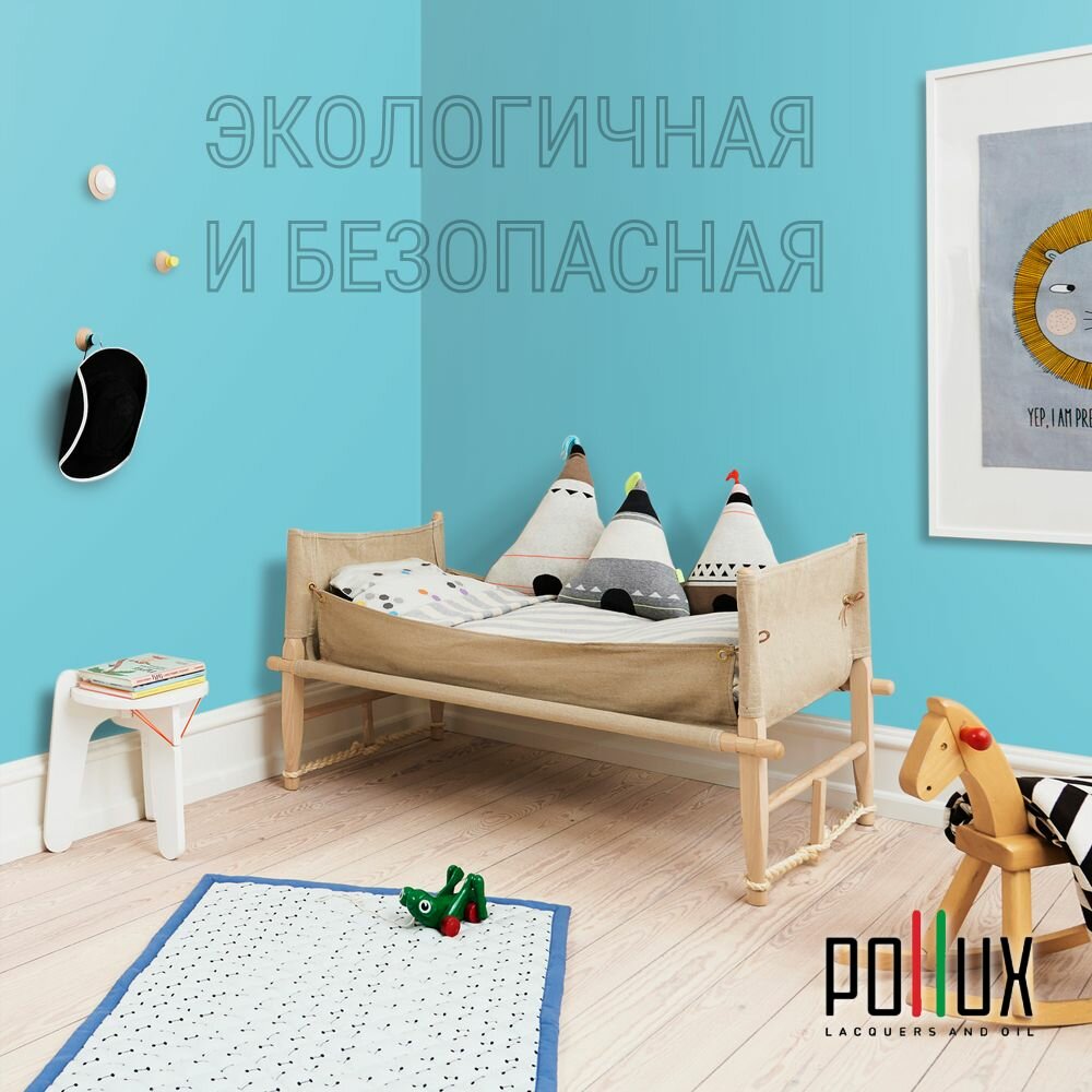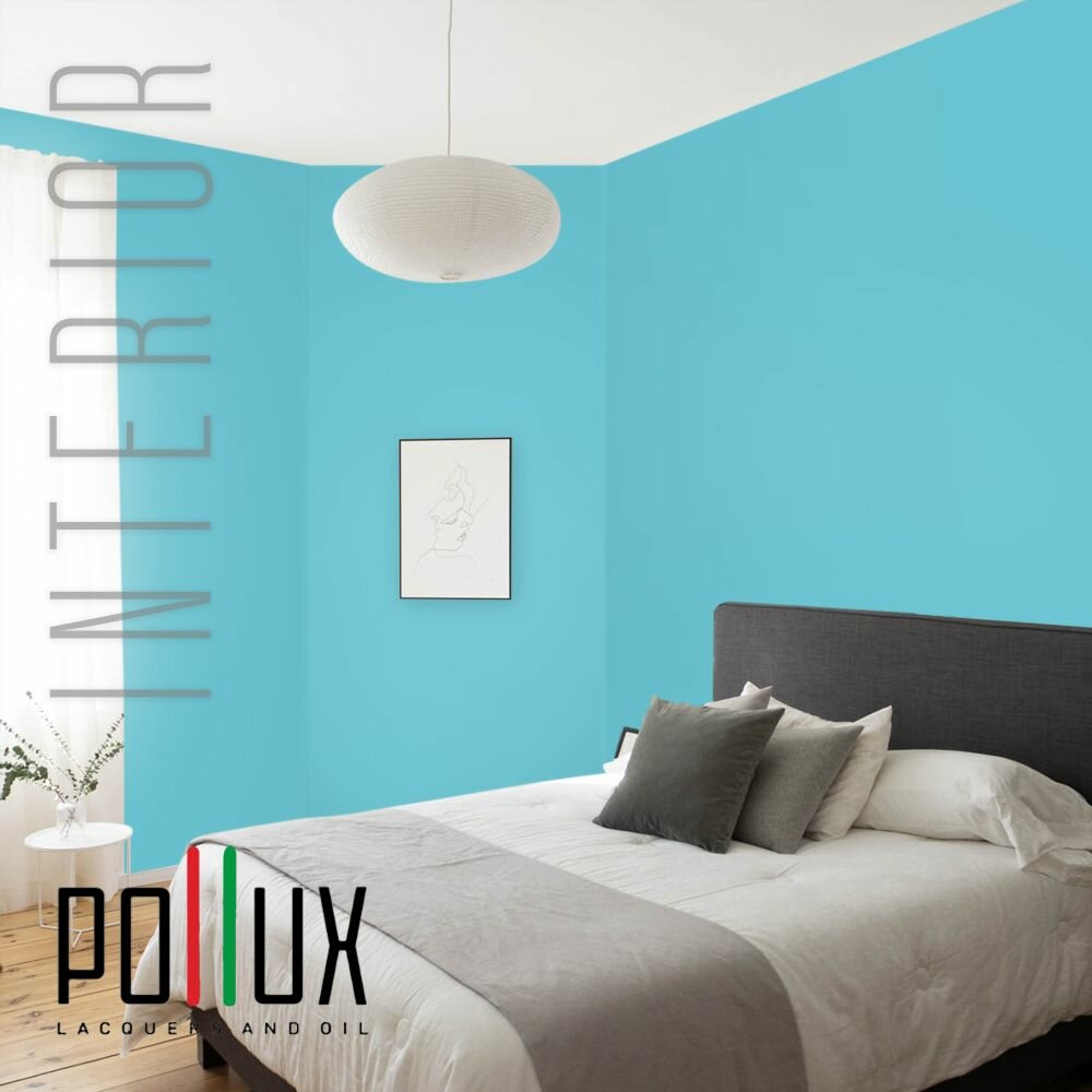 Краска моющаяся интерьерная для стен и потолков, Pollux INTERIOR без запаха, быстросохнущая, акриловая, матовое покрытие, цвет NCS S 2050-B20G, 1л.