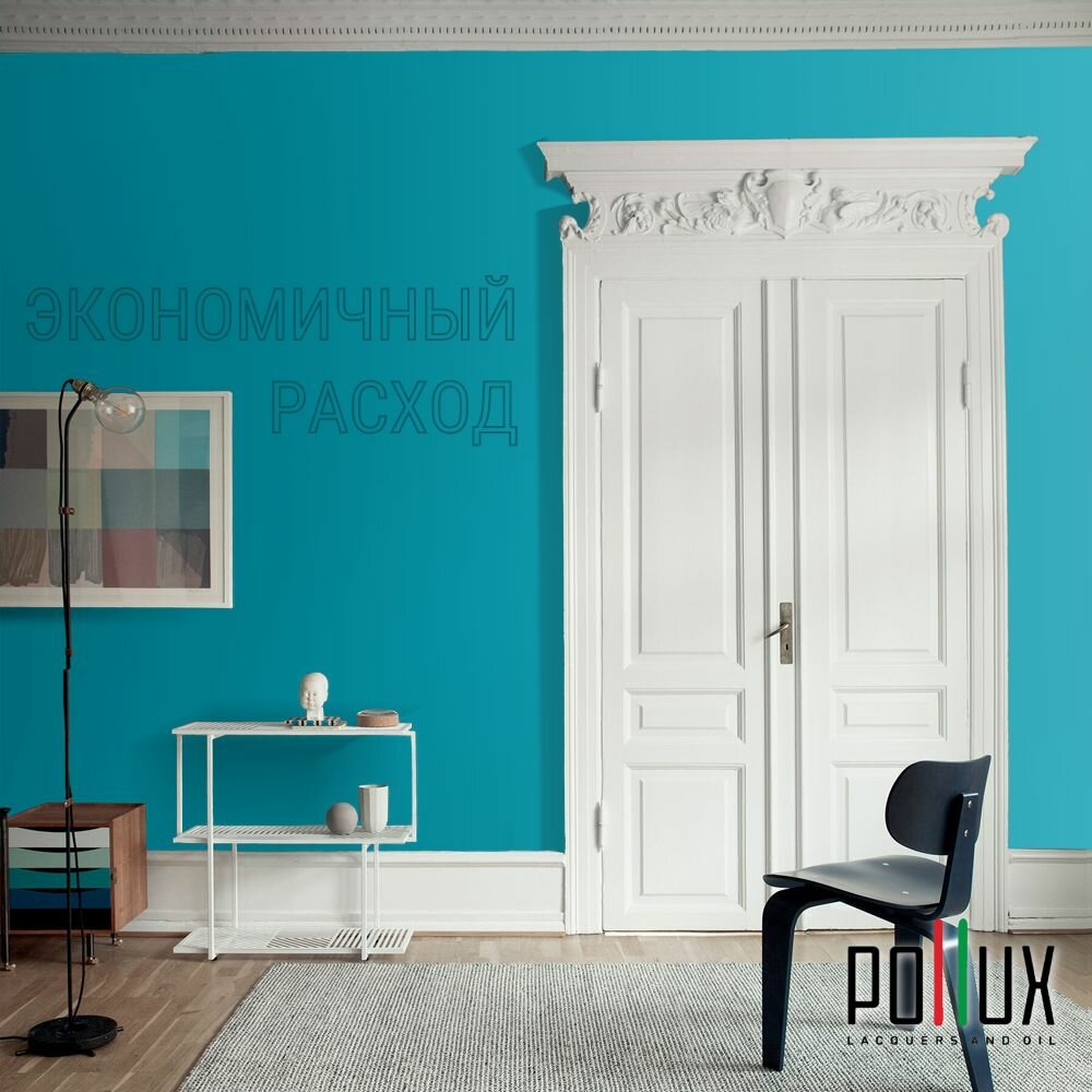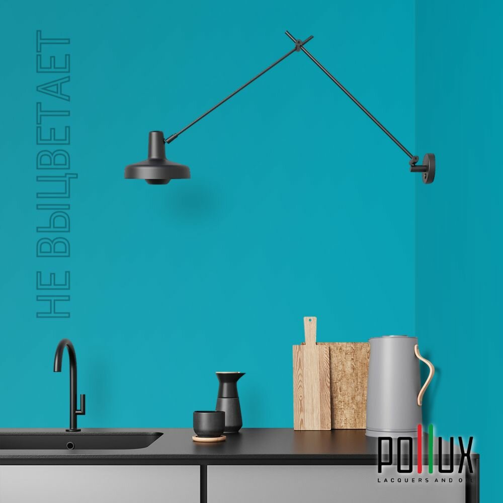 Краска моющаяся интерьерная для стен и потолков, Pollux INTERIOR без запаха, быстросохнущая, акриловая, матовое покрытие, цвет NCS S 2040-B20G, 1л.