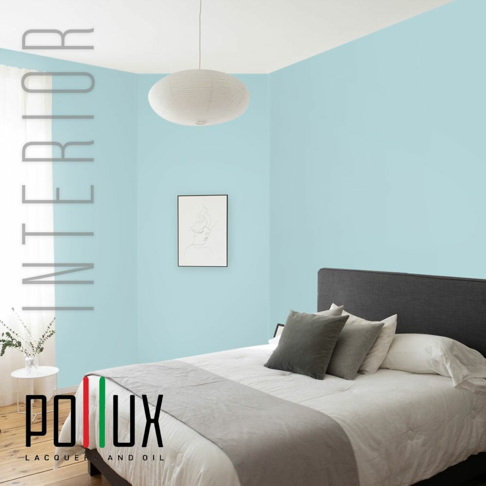 Краска моющаяся интерьерная для стен и потолков, Pollux INTERIOR без запаха, быстросохнущая, акриловая, матовое покрытие, цвет NCS S 2040-B20G, 1л.