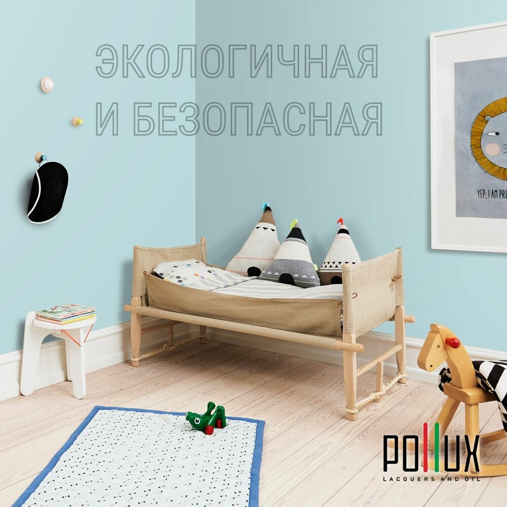 Краска моющаяся интерьерная для стен и потолков, Pollux INTERIOR без запаха, быстросохнущая, акриловая, матовое покрытие, цвет NCS S 2050-B20G, 1л.