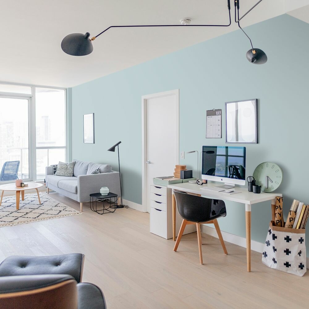 Краска моющаяся интерьерная для стен и потолков, Pollux INTERIOR без запаха, быстросохнущая, акриловая, матовое покрытие, цвет NCS S 2050-B20G, 1л.