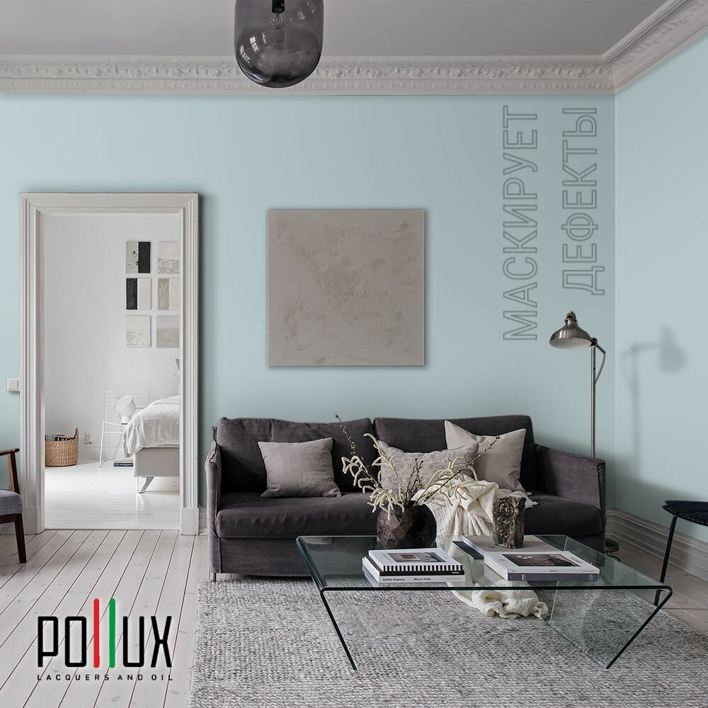 Краска моющаяся интерьерная для стен и потолков, Pollux INTERIOR без запаха, быстросохнущая, акриловая, матовое покрытие, цвет NCS S 0907-B20G, 1л.