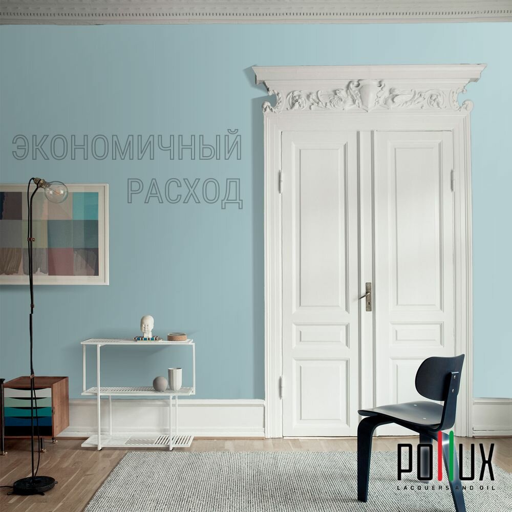 Краска моющаяся интерьерная для стен и потолков, Pollux INTERIOR без запаха, быстросохнущая, акриловая, матовое покрытие, цвет NCS S 2040-B20G, 1л.