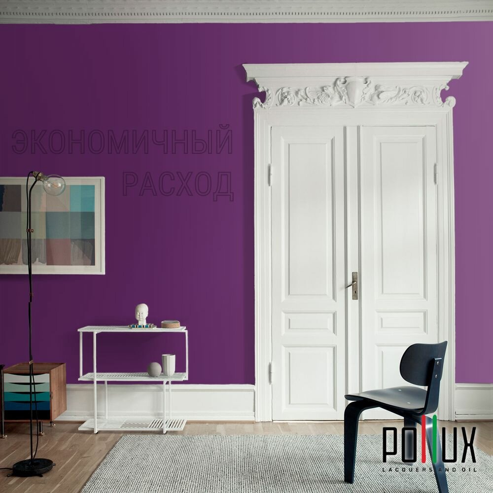 Краска моющаяся интерьерная для стен и потолков, Pollux INTERIOR без запаха, быстросохнущая, акриловая, матовое покрытие, цвет NCS S 5005-R50B, 1л.