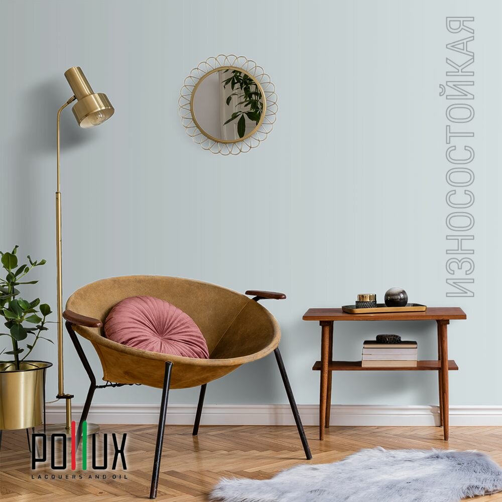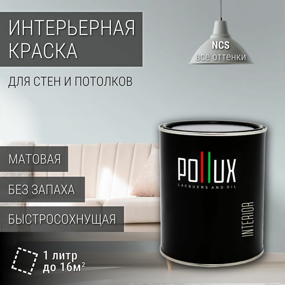 Краска моющаяся интерьерная для стен и потолков, Pollux INTERIOR без запаха, быстросохнущая, акриловая, матовое покрытие, цвет NCS S 5005-R50B, 1л.
