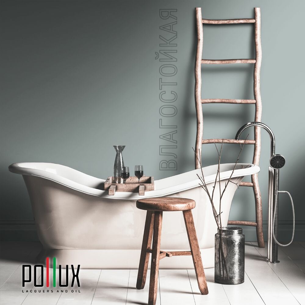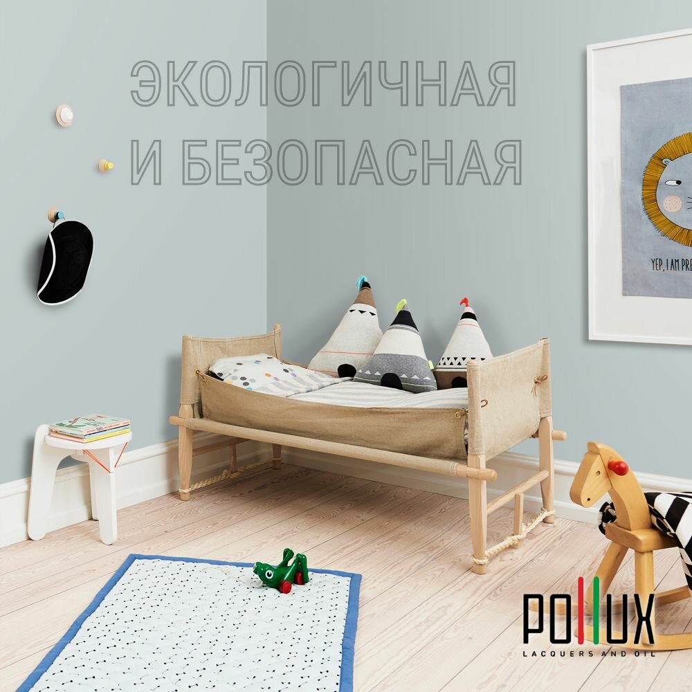 Краска моющаяся интерьерная для стен и потолков, Pollux INTERIOR без запаха, быстросохнущая, акриловая, матовое покрытие, цвет NCS S 2002-R50B, 1л.