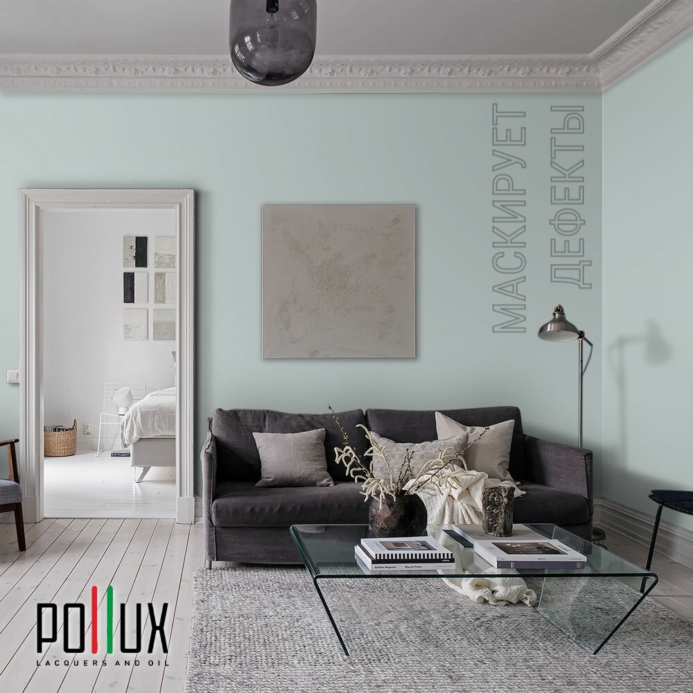 Краска моющаяся интерьерная для стен и потолков, Pollux INTERIOR без запаха, быстросохнущая, акриловая, матовое покрытие, цвет NCS S 1005-B, 1л.