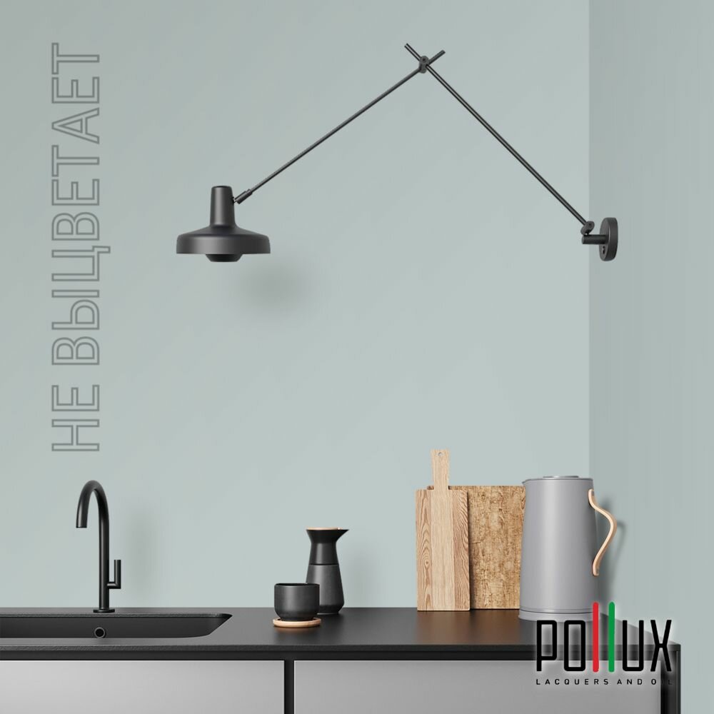 Краска моющаяся интерьерная для стен и потолков, Pollux INTERIOR без запаха, быстросохнущая, акриловая, матовое покрытие, цвет NCS S 1515-B20G, 1л.