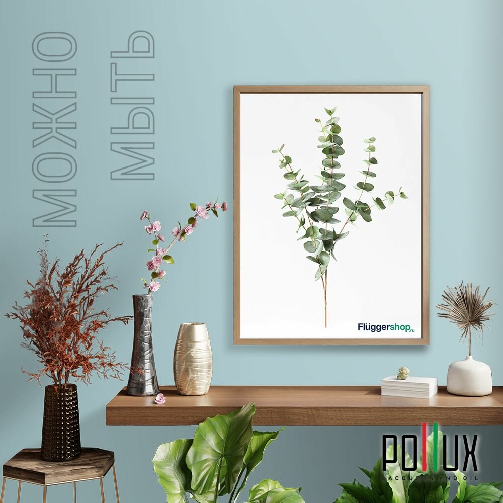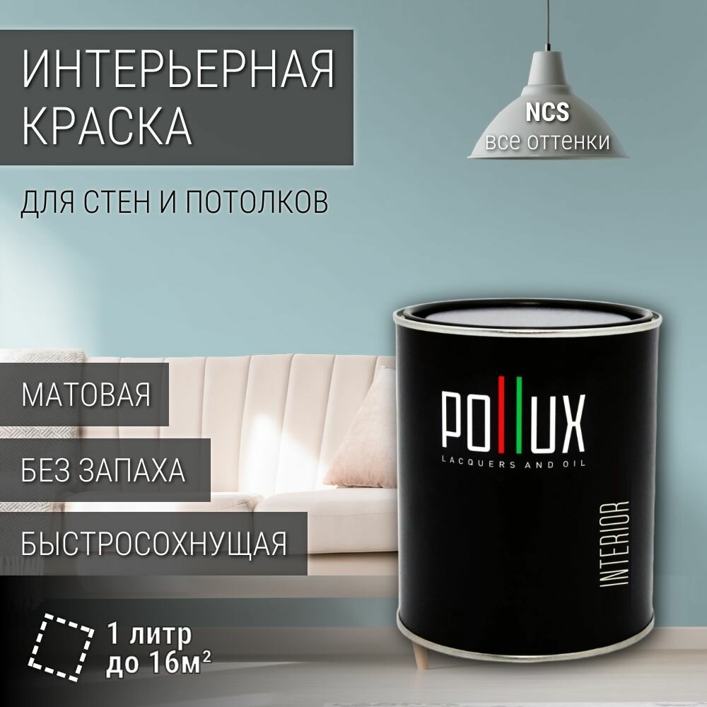 Краска моющаяся интерьерная для стен и потолков, Pollux INTERIOR без запаха, быстросохнущая, акриловая, матовое покрытие, цвет NCS S 5005-R50B, 1л.