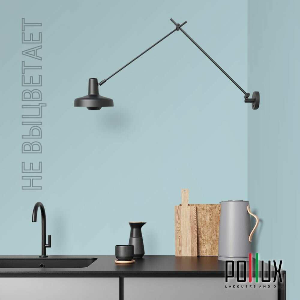 Краска моющаяся интерьерная для стен и потолков, Pollux INTERIOR без запаха, быстросохнущая, акриловая, матовое покрытие, цвет NCS S 1510-B, 1л.