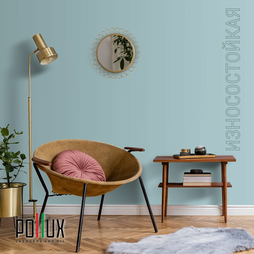 Краска моющаяся интерьерная для стен и потолков, Pollux INTERIOR без запаха, быстросохнущая, акриловая, матовое покрытие, цвет NCS S 4050-R50B, 1л.