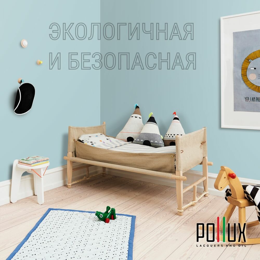 Краска моющаяся интерьерная для стен и потолков, Pollux INTERIOR без запаха, быстросохнущая, акриловая, матовое покрытие, цвет NCS S 1005-B, 1л.