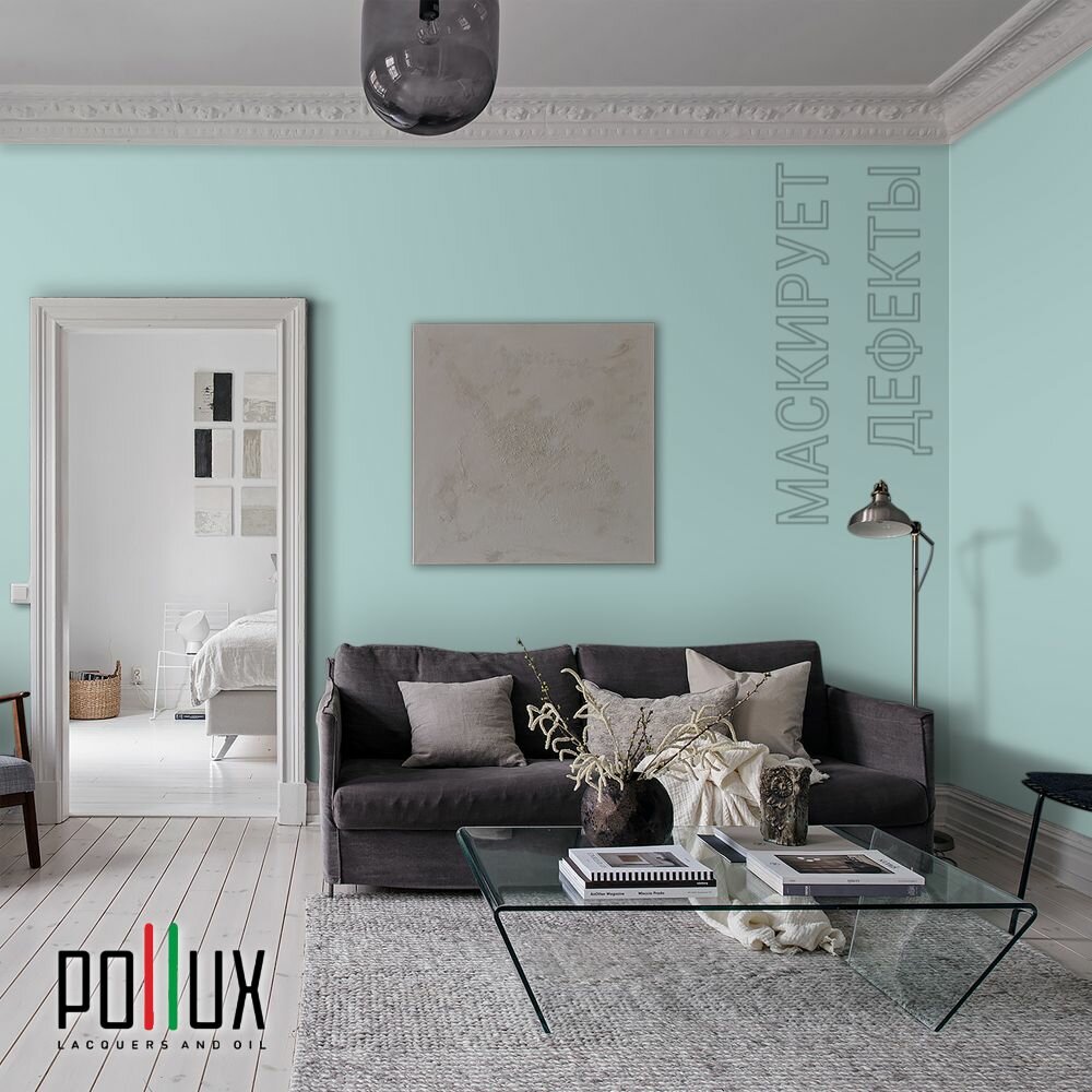 Краска моющаяся интерьерная для стен и потолков, Pollux INTERIOR без запаха, быстросохнущая, акриловая, матовое покрытие, цвет NCS S 1515-B50G, 1л. интересное: