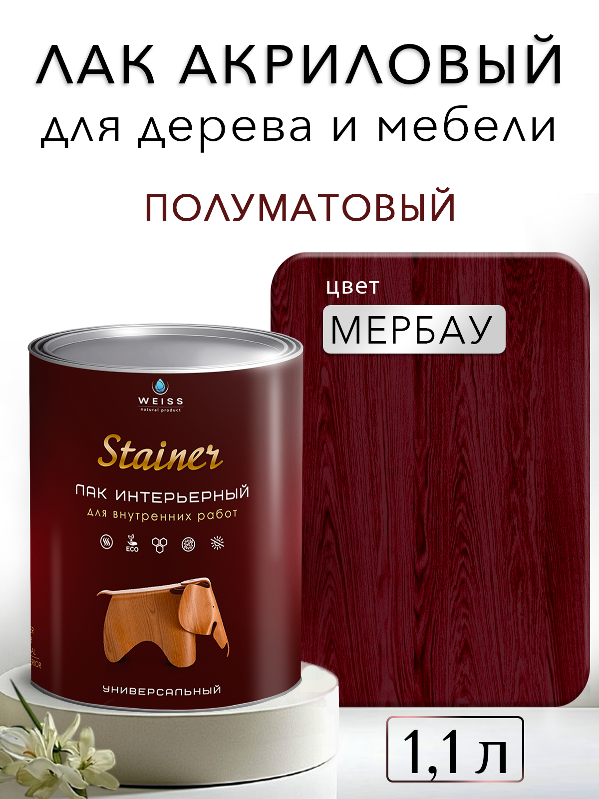 Купить Лак для дерева акриловый мербау, полуматовый, Weiss natural product, без запаха, самовыравнивающийся, 1.1л