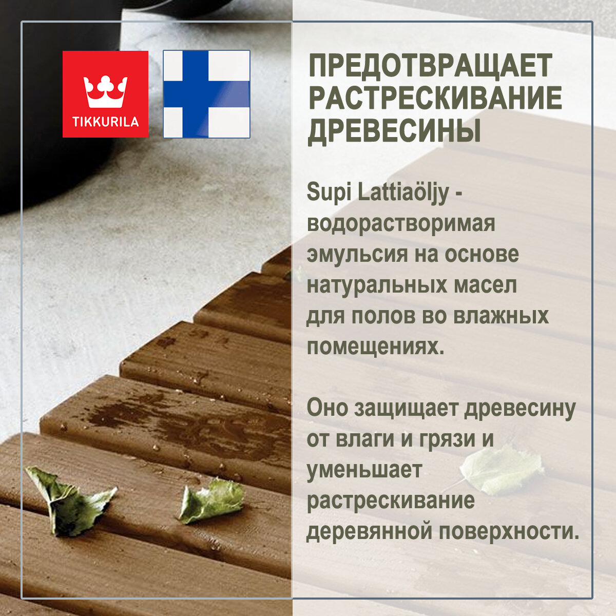 Масло для пола Tikkurila Supi Lattiaolju/Тиккурила Супи Латтиаолью, для бани и влажных помещений. FIN 0.9 л Прозрачный интересное: