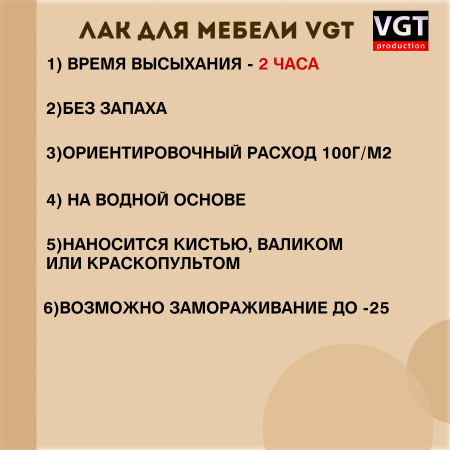 Купить Лак для мебели VGT Матовый PREMIUM Полиуретановый Однокомпонентный На водной основе.