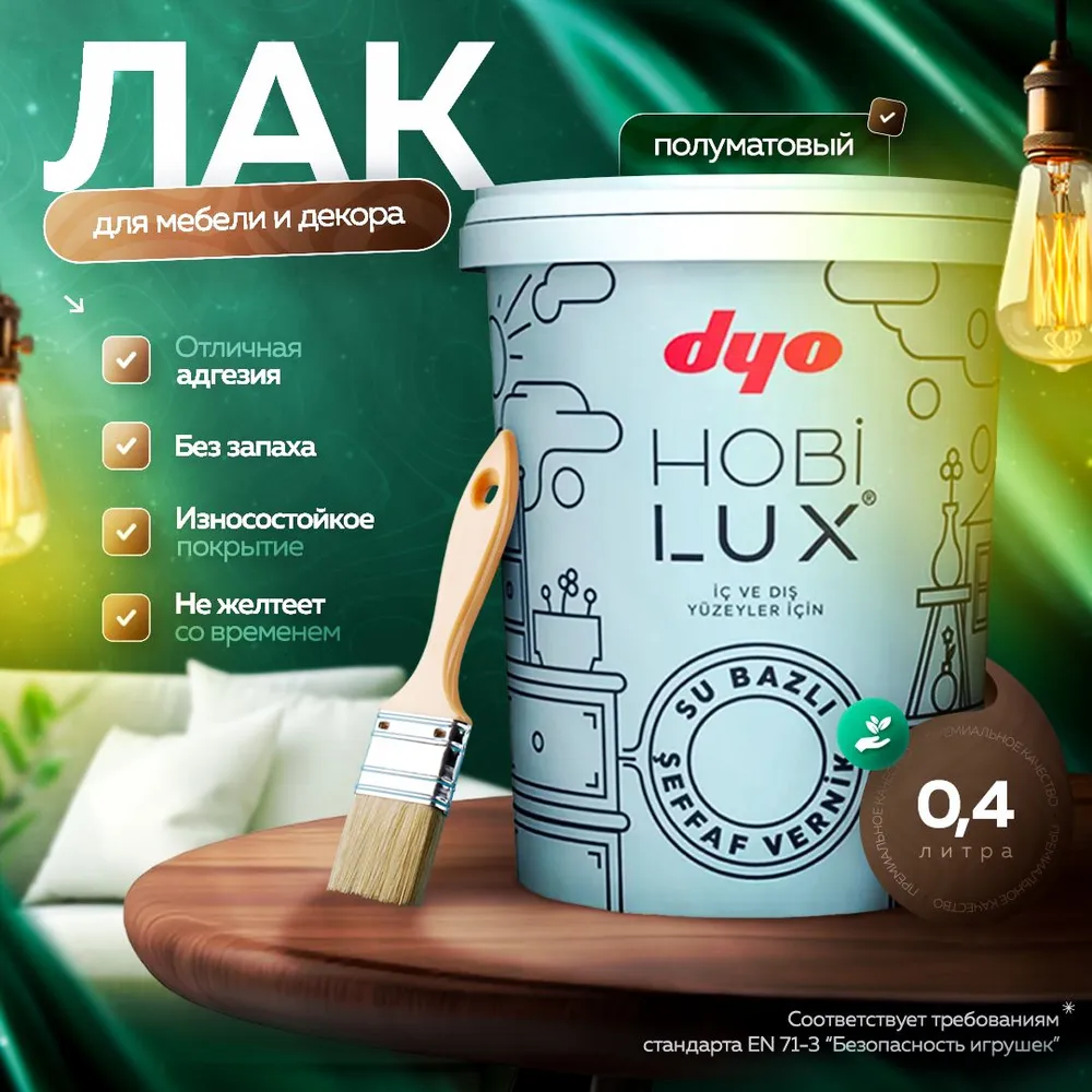 Лак акриловый HOBILUX Dyo полуматовый, прозрачный, декоративный, универсальный 0,4 л интересное: