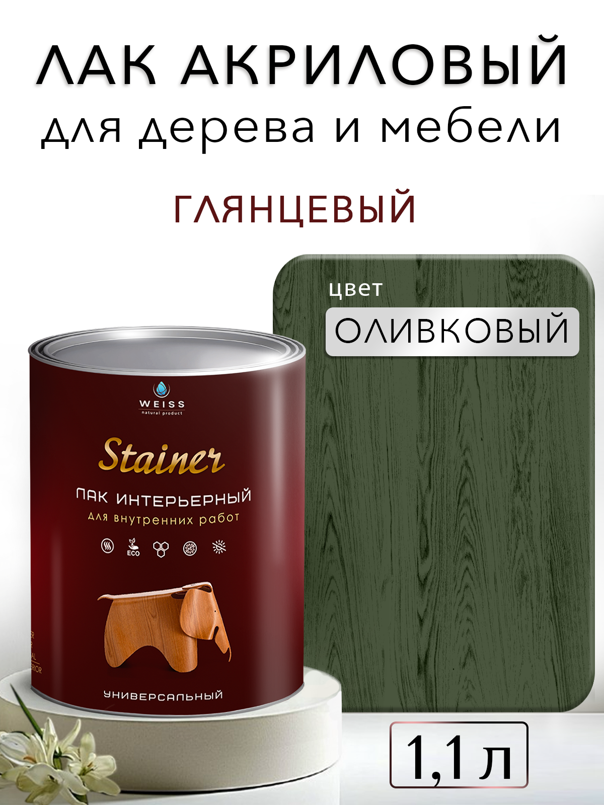 Купить Лак для дерева акриловый оливковый, глянцевый, Weiss natural product, без запаха, самовыравнивающийся, 1.1л