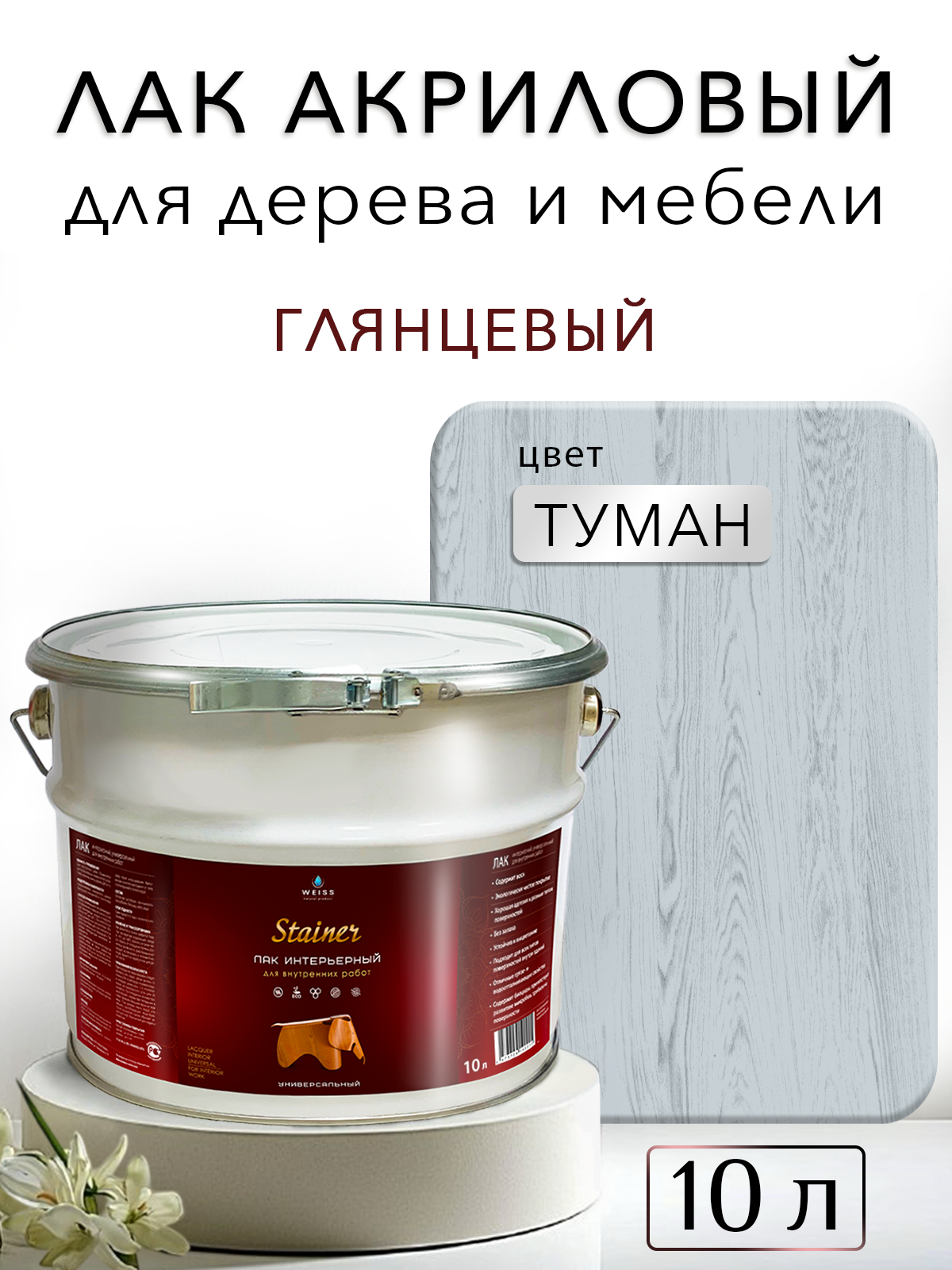 Купить Лак для дерева акриловый туман, глянцевый, Weiss natural product, без запаха, самовыравнивающийся, 10л