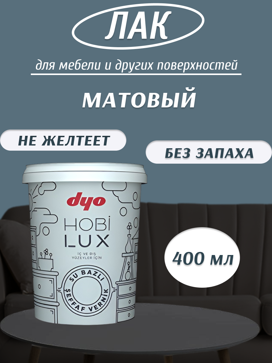 Лак "Dyo" на водной основе, матовый, без запаха "HOBILUX" 0,4 л интересное: