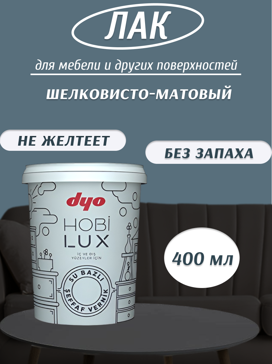 Лак "Dyo" на водной основе, шелковисто-матовый, без запаха "HOBILUX" 0,4л интересное: