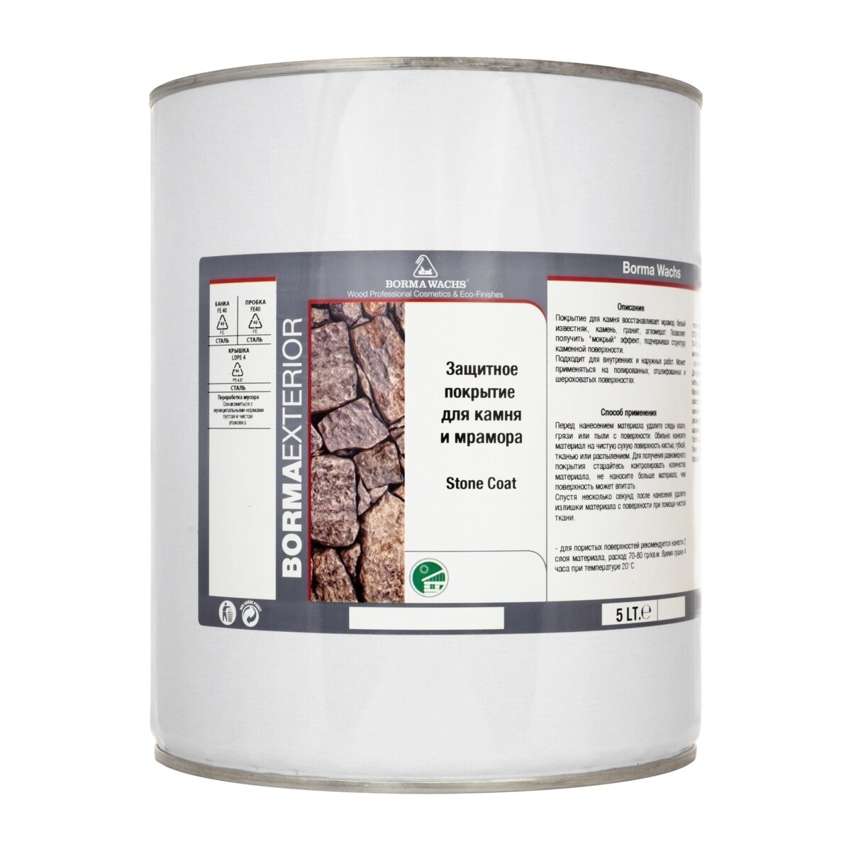 Специальный лак для защиты камня и мрамора Borma Stone Coat 5 л Полуматовый 5050.5 интересное: