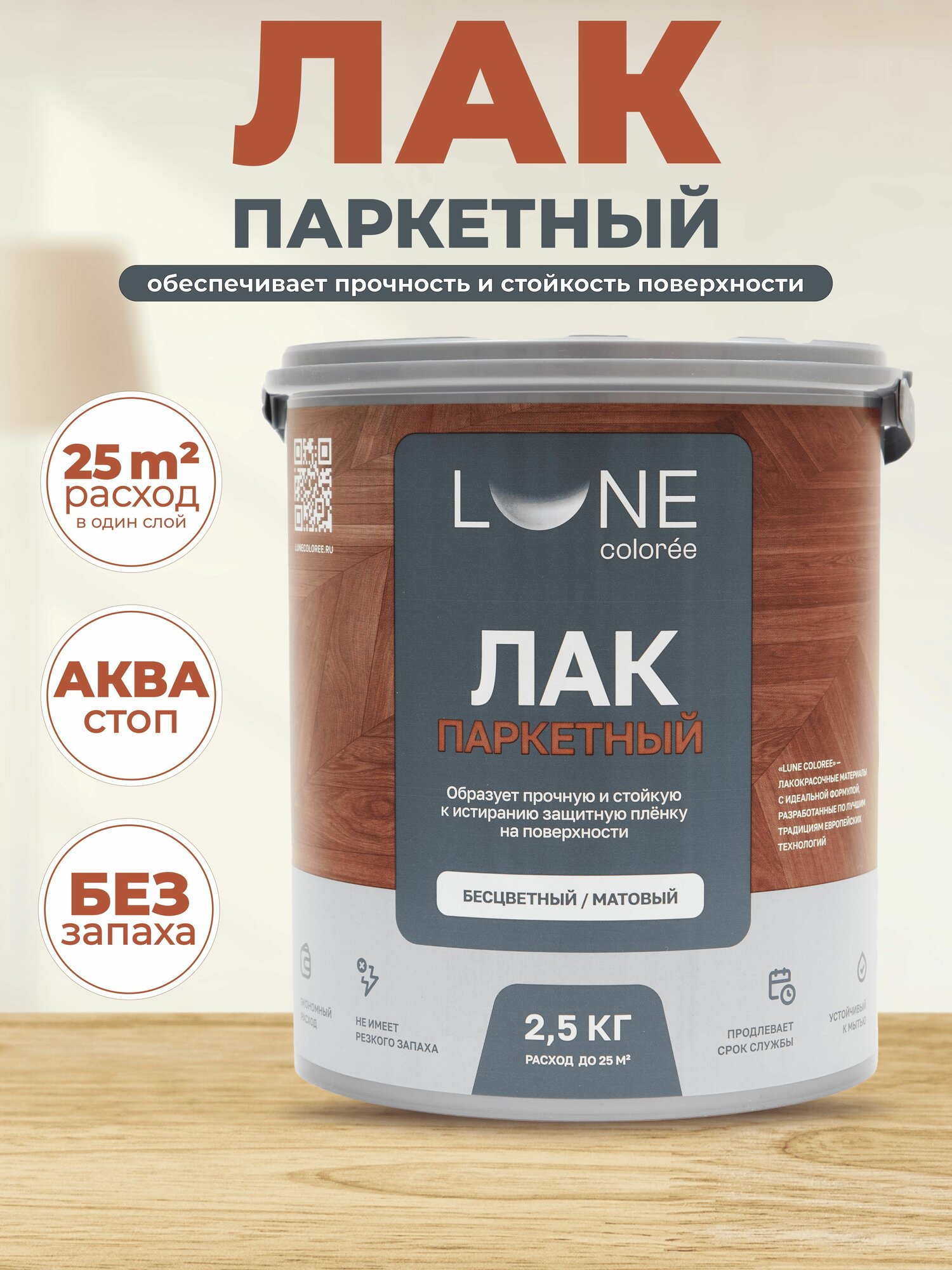 Лак паркетный по дереву акриловый для пола Lune Coloree матовый 2.5 кг интересное: