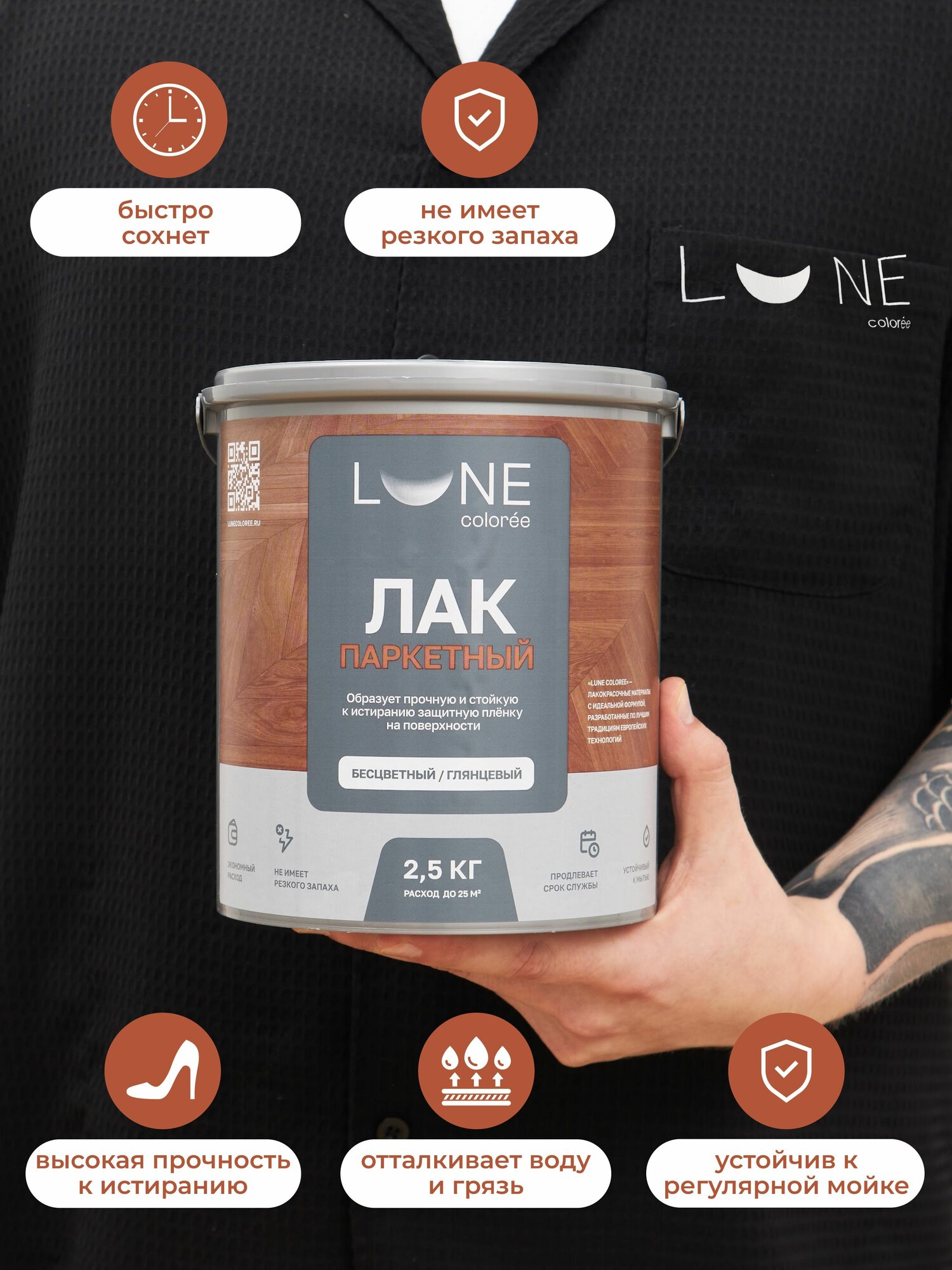 Лак паркетный по дереву акриловый для пола Lune Coloree глянцевый 2.5 кг интересное: