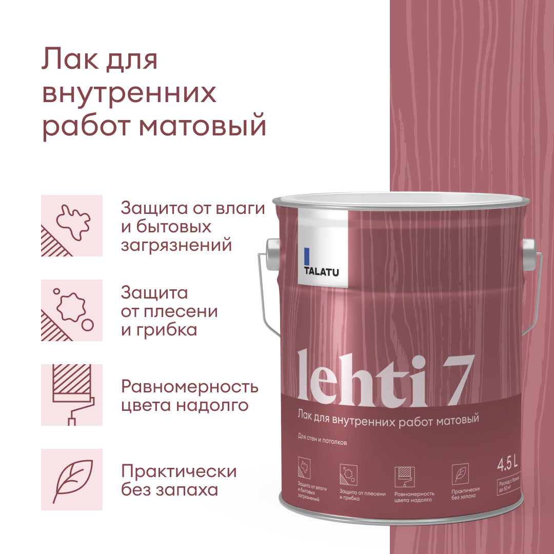 Лак для дерева Talatu Lehti 7, акриловый, матовый, база С, бесцветный, 4,5 л интересное: