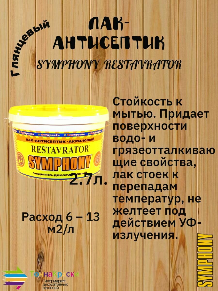 Лак акриловый антисептик Symphony реставратор EP глянцевый 2.7л интересное: