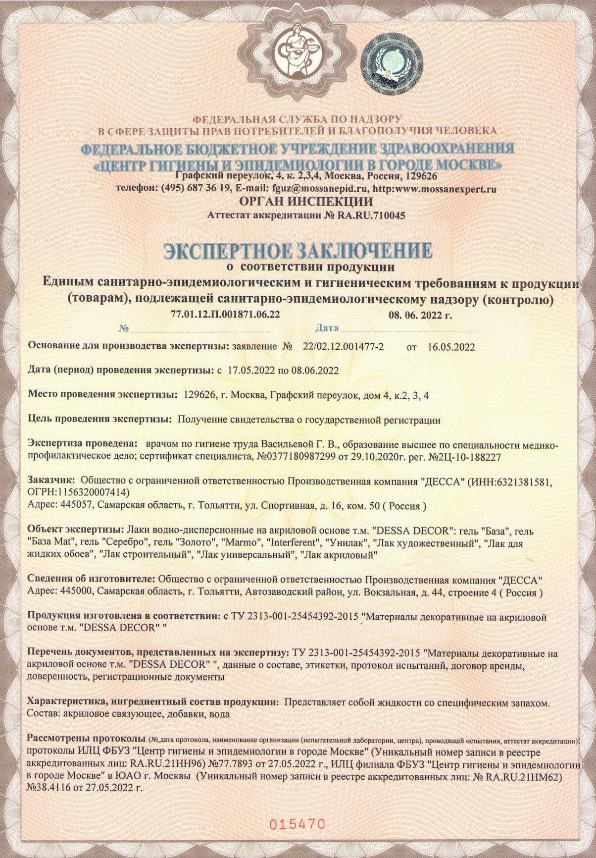 Лак DESSA DECOR, акриловый, без запаха, для мебели и картин, матовый, прозрачный, 500мл