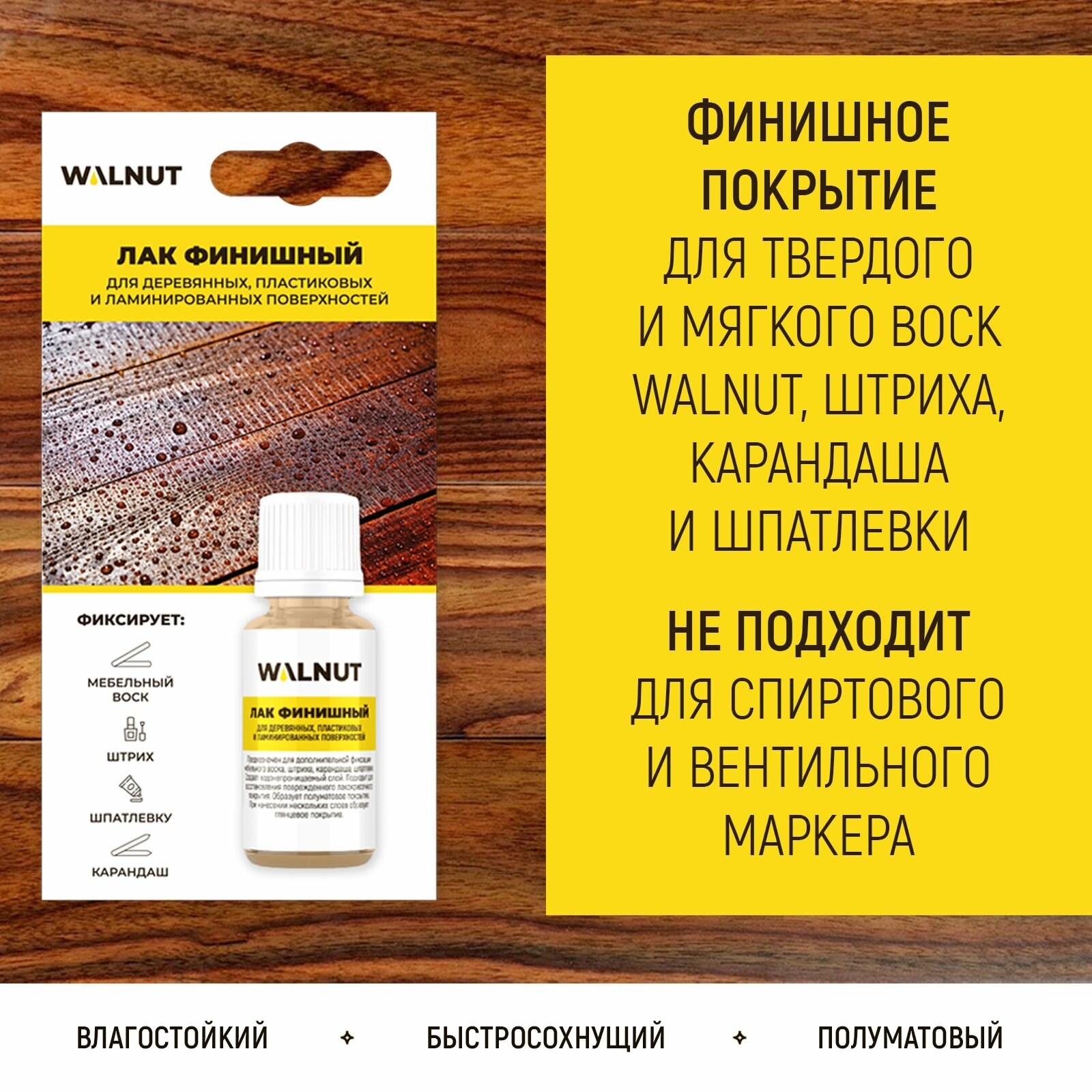 Лак финишный WALNUT 20мл, бесцветный, для деревянной мебели, универсальный, 1шт интересное: