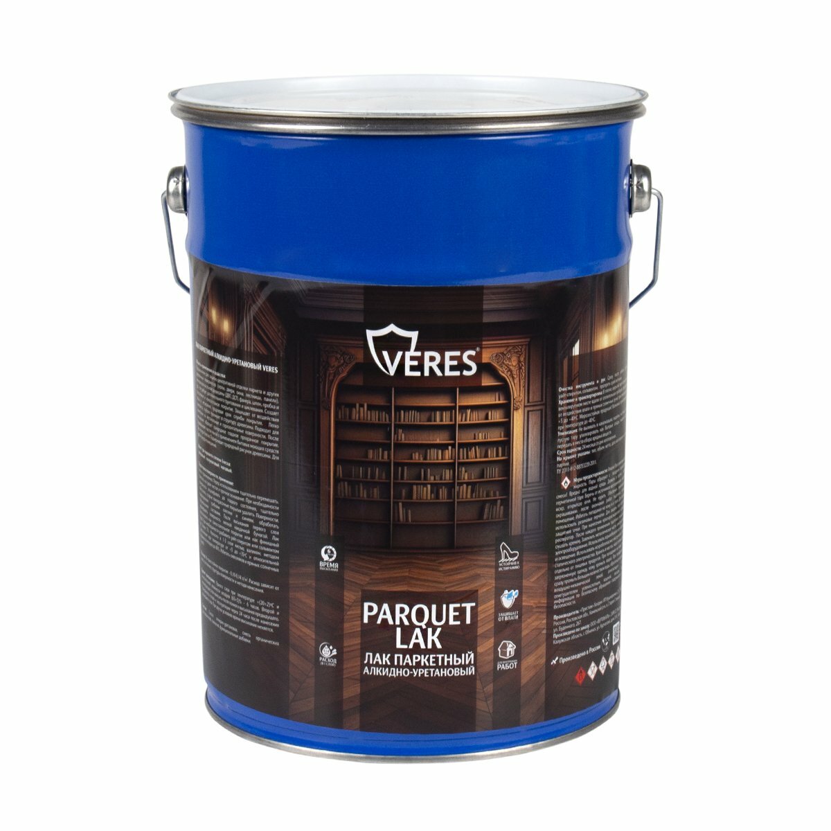 Лак паркетный Veres, алкидно-уретановый, бесцветный, глянцевый, 10 л, 1шт, жестяное ведро