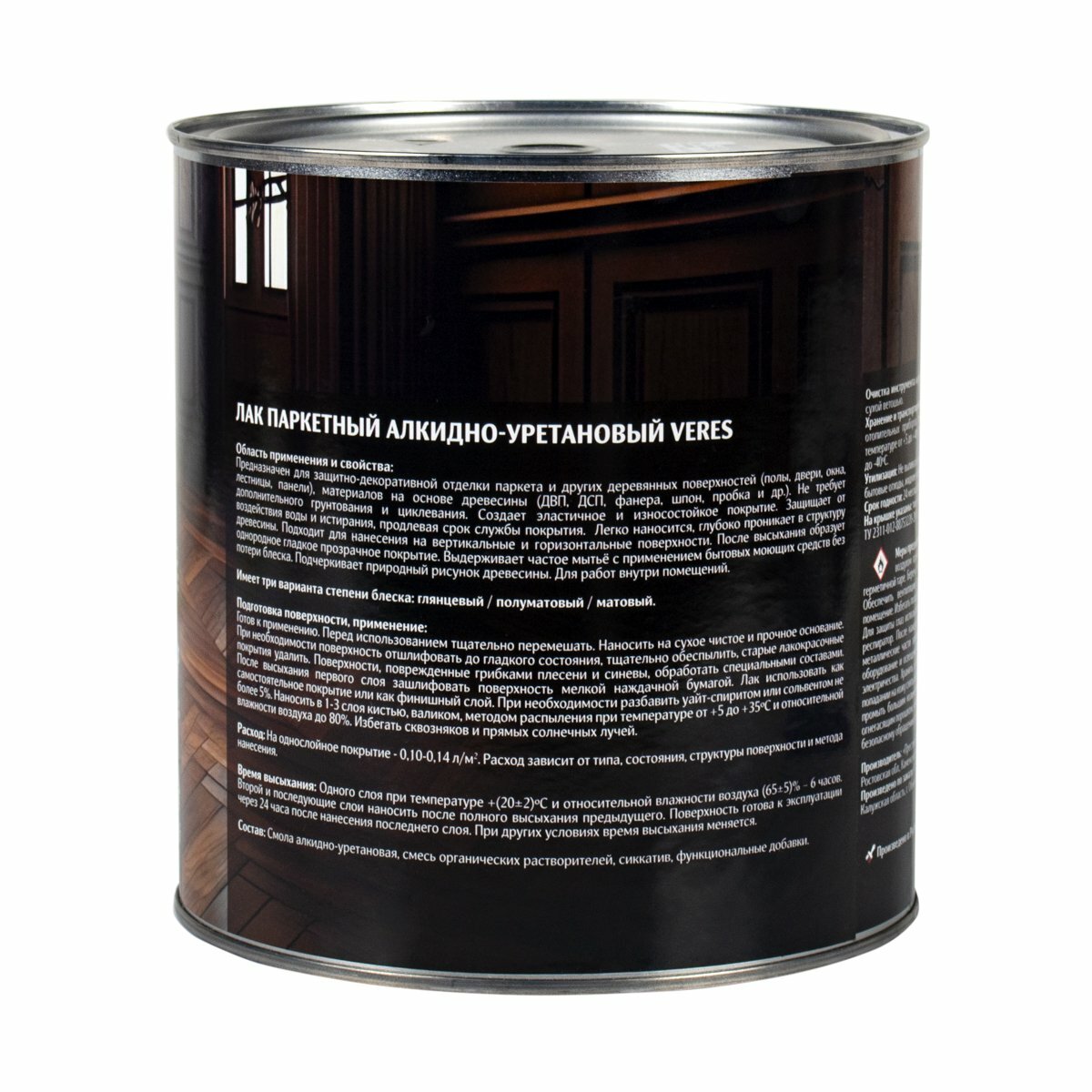 Лак паркетный Veres, алкидно-уретановый, бесцветный, матовый, 1,9 л, 1шт, жестяная банка